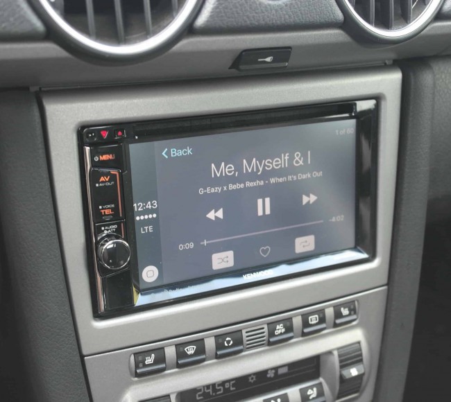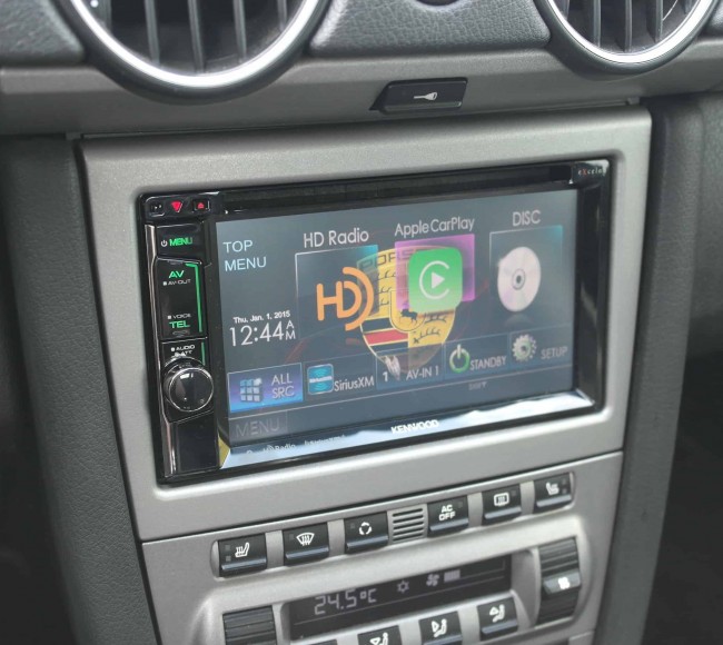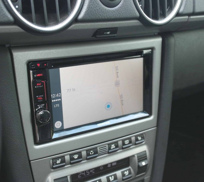 2008 Boxter in for an Audio upgrade to keep modernize it, and give it better sound, we added a Kenwood CarPlay headunit, along with Focal flax 3ways, Bi-Amped off a new FPX Focal 4 channel. Custom composite plates were made to fit the mid bass drivers properly to the door, and Focal Bam sound deadening was used to enhance the speakers and keep road noise out!