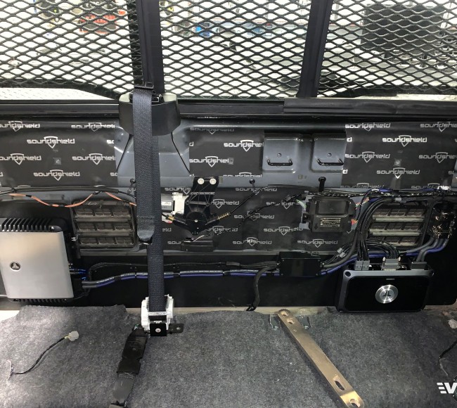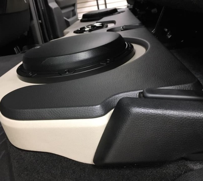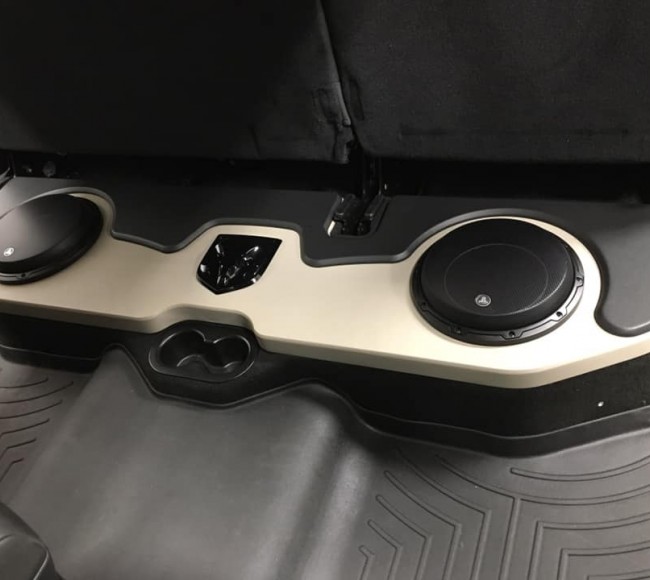 - Custom 2 tone sub enclosure matching OEM piping and stitching