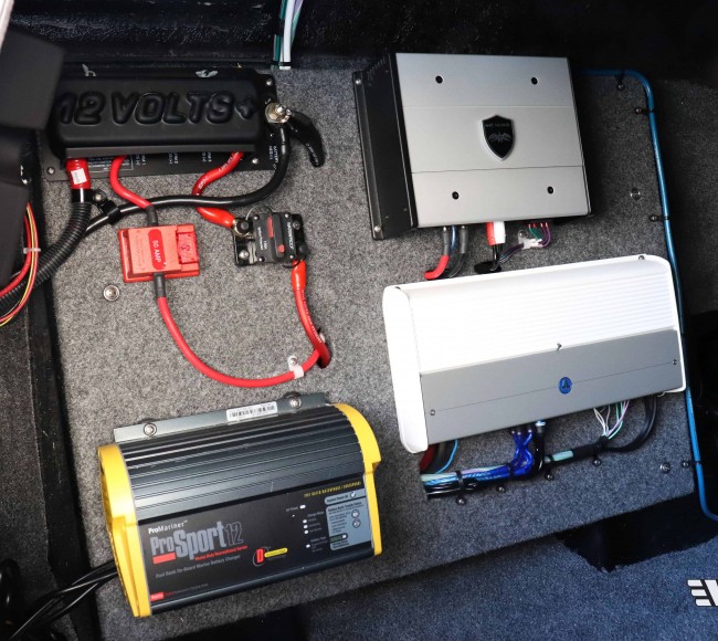 - JL Audio M1000/5v2 running Subwoofer and cabin speakers